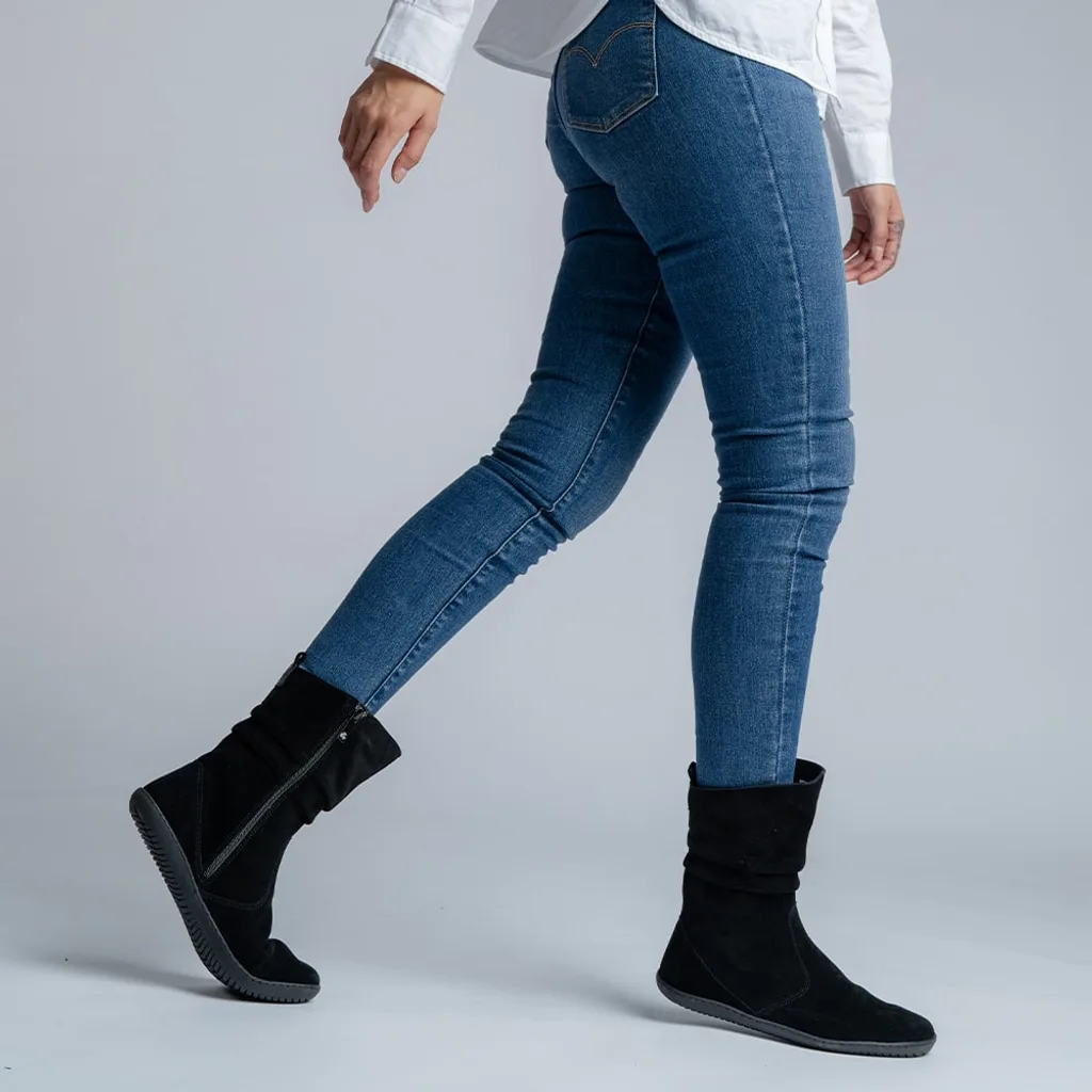 Super casual: Cizmele barefoot ODESSA de la Groundies te vor face să te simți confortabilă chiar și în zilele reci de toamnă și iarnă. Asortează aceste cizme barefoot scurte, confecționate din piele intoarsă moale, cu fuste și rochii, dar și cu blugi skinny. Tăietura lejeră a cizmei barefoot accentuează look-ul relaxat. Talpa tipică GROUNDIES® barefoot este complet plată, subțire și absolut flexibilă, lăsându-te să simți solul la fiecare pas. Vei merge mai sănătos și mai natural. Cizmele barefoot Odessa sunt căptușite cu microfibră respirabilă care îți menține picioarele calde chiar și în zilele mai răcoroase.